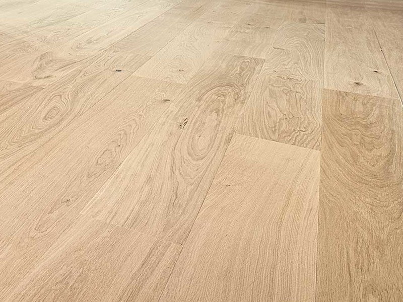 Parquet realizzato in rovere di Fontaines tinto Biancospino. il legno nobile di 3,5 mm è bilanciato in multistrato di betulla per uno spessore totale di 12 mm la finitura superficiale Naturplus2 Matt. Verniciatura opaca che rende questo pavimento molto materico. la selezione è Charme, venatura mista tipica dell’essenza e presenza di nodi.